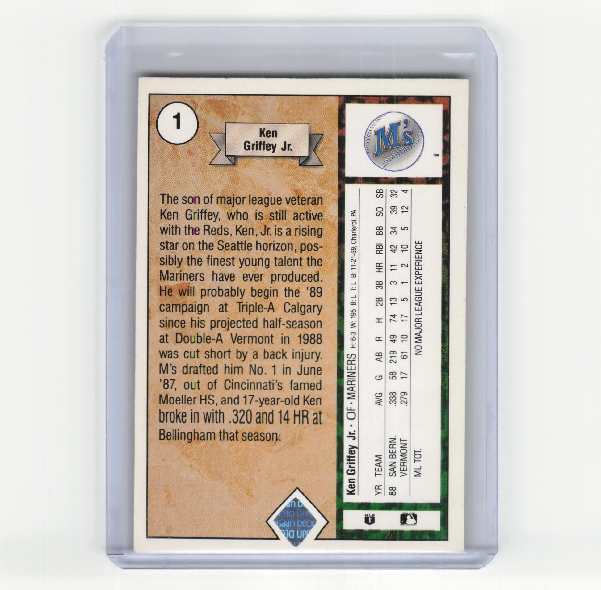 1989 Upper Deck Baseball Ken Griffey Jr. Star Rookie #1 Near Mint
