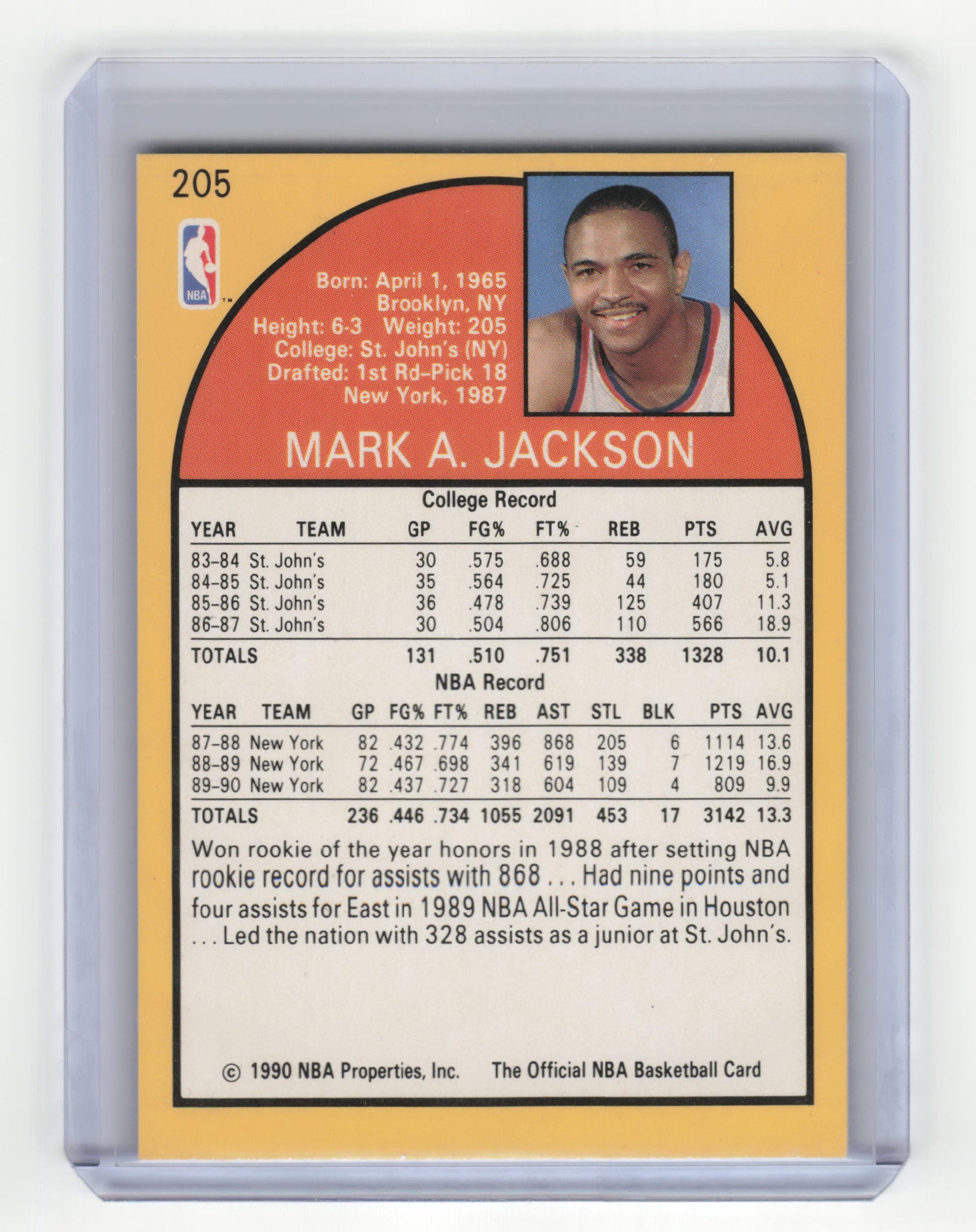 1990 NBA Hoops Basketball Mark Jackson Near Mint #205
