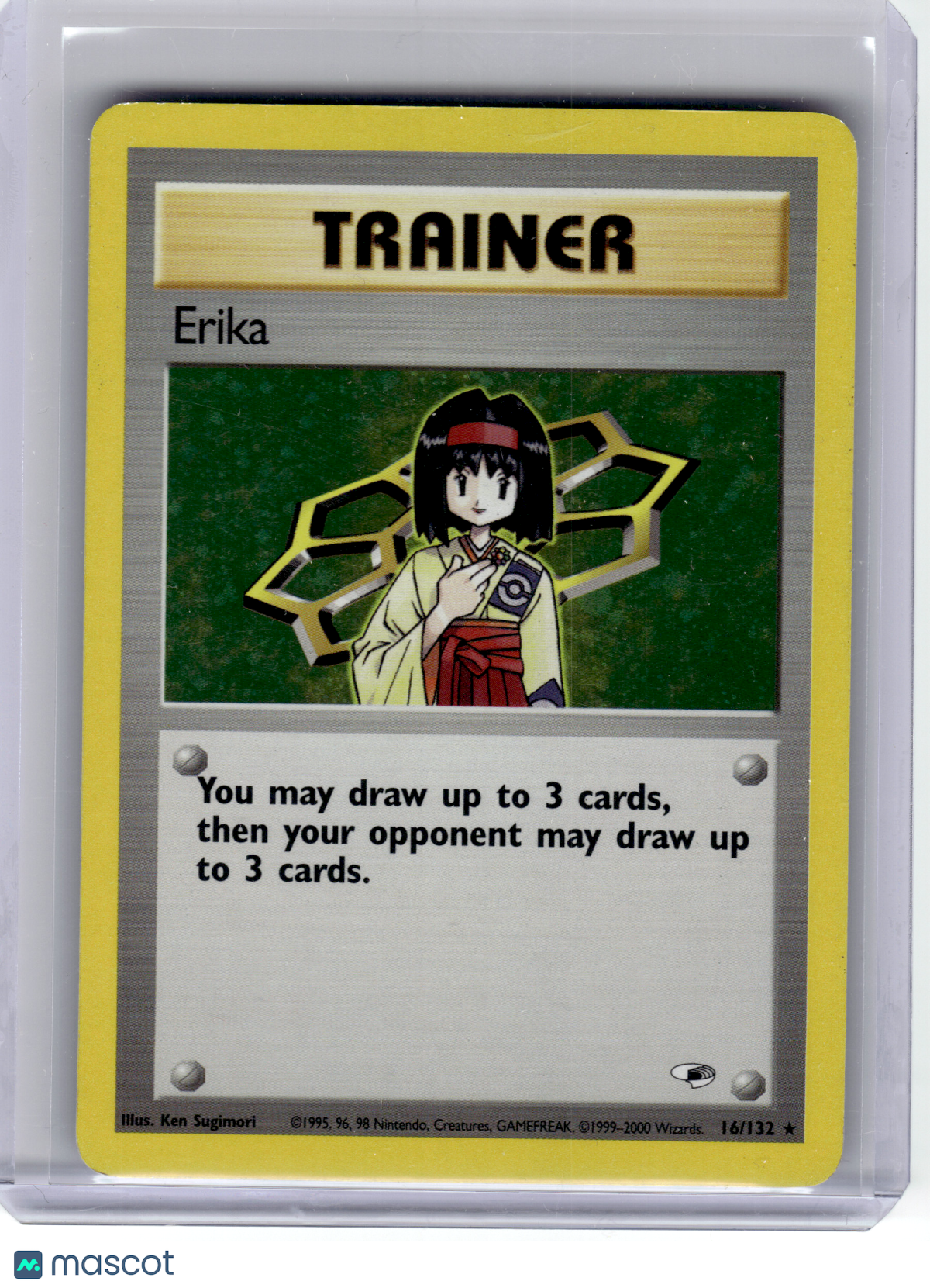 Please read the title of the listing while confirming the photo(s) and the description below. Use the photos as reference as the card condition listed may be incorrect. Please note that for card singles, minor image warping may be present due to our scanning process, but if a misprint is present on the card, the listing will declare so. Reach out to us in advance if you have any questions about condition or quality! Items are crossposted and synced across multiple platforms so act soon if interested! Item Information Character: Erika Card Number: #16 Year: 2000 Game: Pokemon Set: Gym Heroes Rarity: Rare Finish: Holo Features: [Heavily Played] Condition: Heavily Played (Poor) Grade (if applicaple): You are purchasing a 2000 Pokemon—Erika #16 Gym Heroes—Rare Holo [Heavily Played]. You will receive the exact item in the photographs. Thank you for shopping with us! Listed With Mascot.