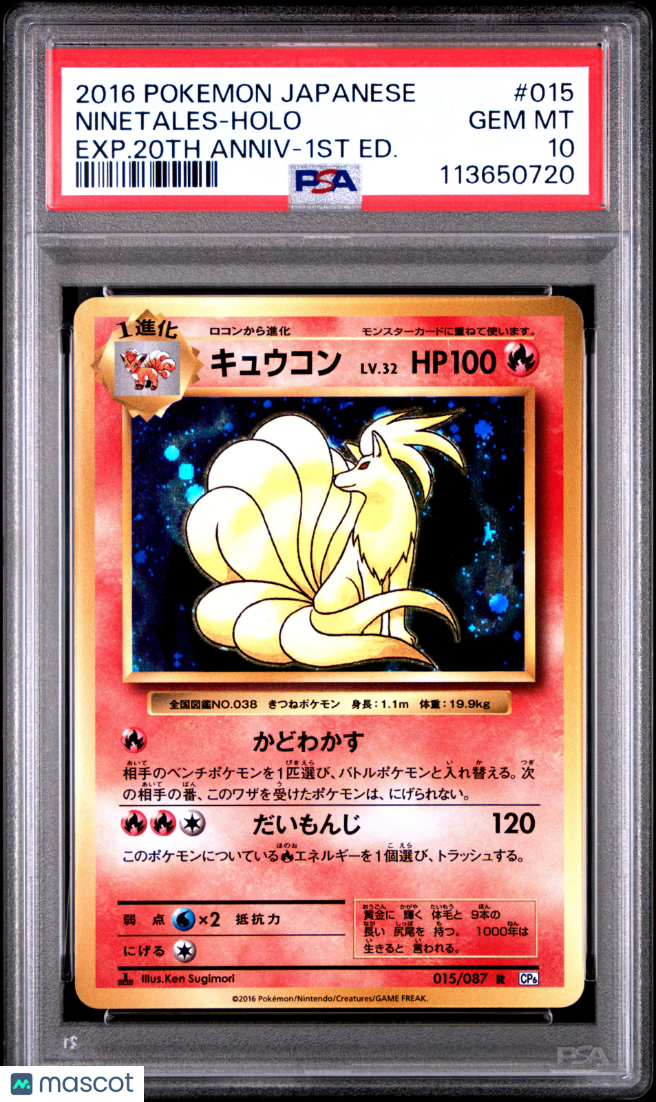 2016 Pokemon Ninetales 20th Anniversary #015 Japanese Holo PSA 10