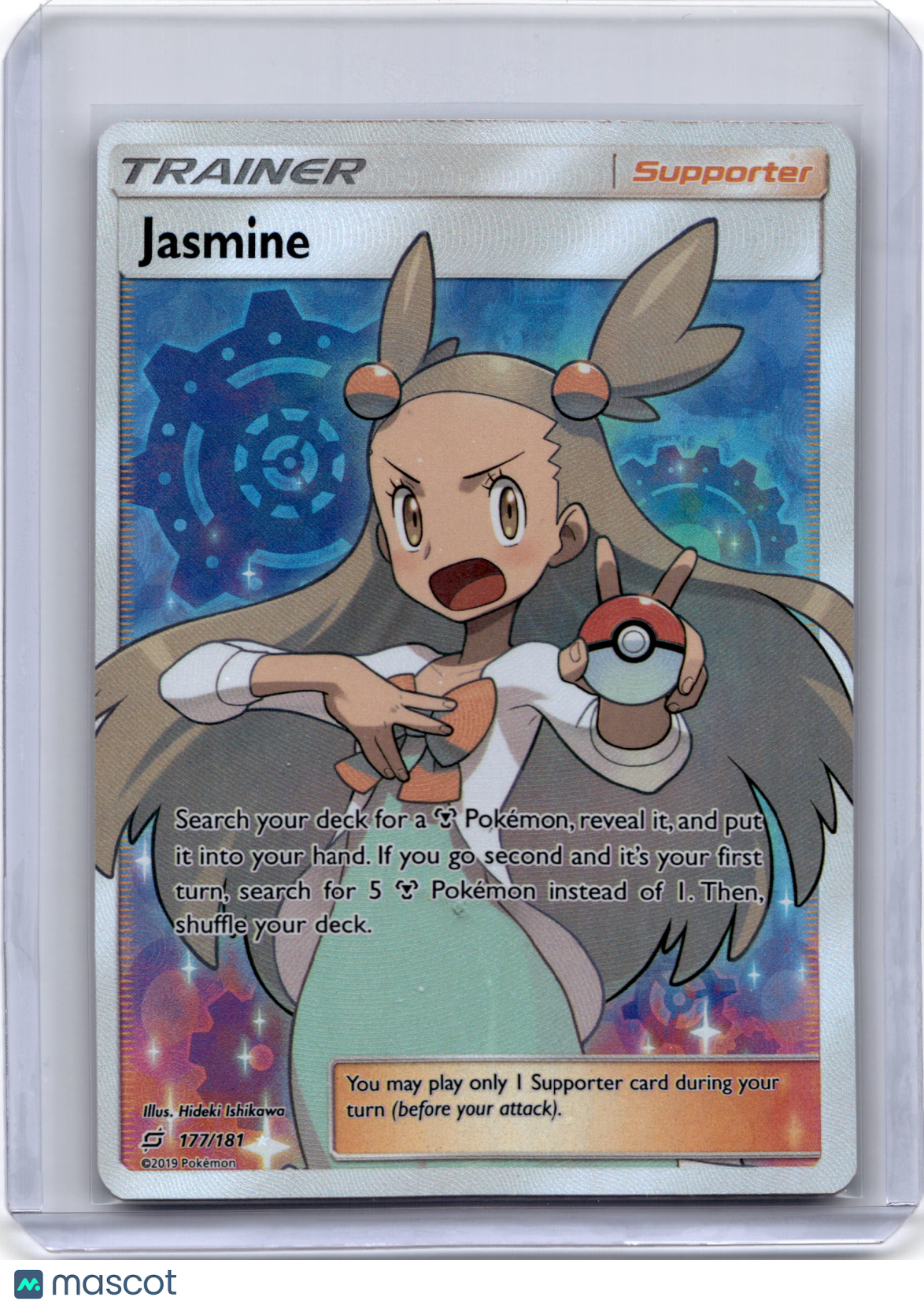 Please read the title of the listing while confirming the photo(s) and the below. Use the photos as reference as the card condition listed my be incorrect. Please reach out in advance if any questions about condition or quality! Items are crossposted and synced across multiple platforms so act soon if interested. Any additional questions please reach out. You are purchasing a 2019 Pokemon Jasmine Sm-Team Up #177/181 Lightly Played. You will receive the exact item in the photographs. Thank you for looking. Listed With Mascot.