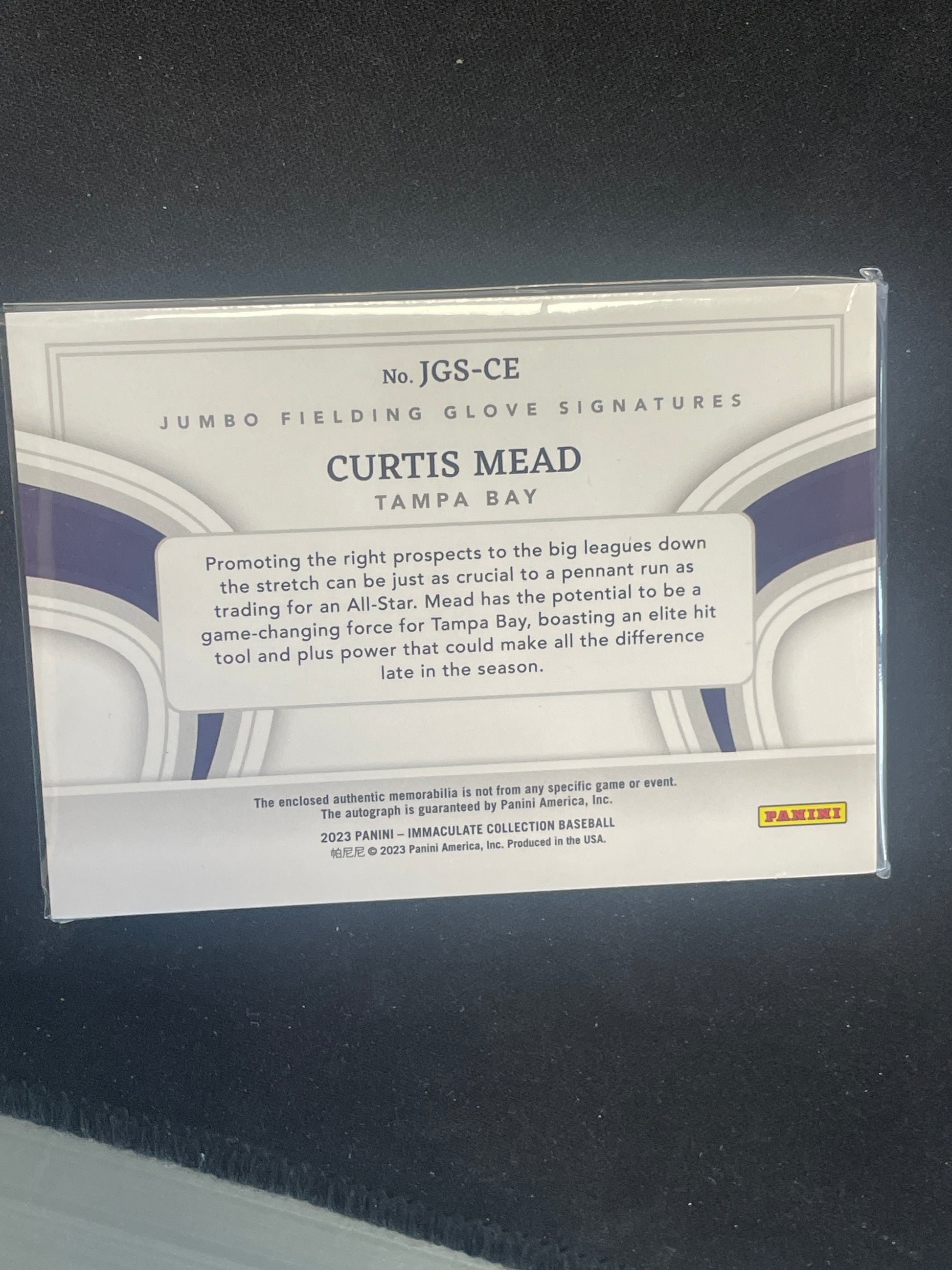 2023 Immaculate Panini Baseball Curtis Mead Autograph Relic /5