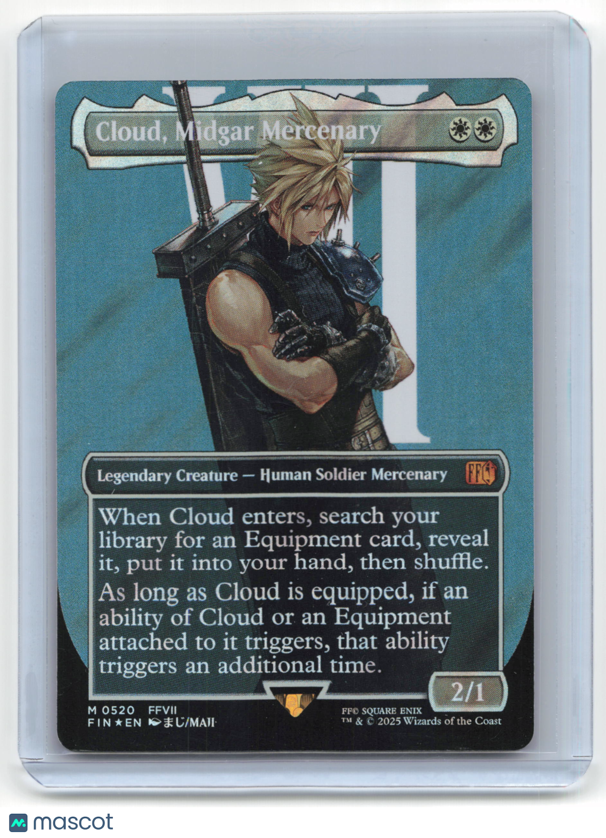 Please read the title of the listing while confirming the photo(s) and the below. Use the photos as reference as the card condition listed my be incorrect. Please reach out in advance if any questions about condition or quality! Items are crossposted and synced across multiple platforms so act soon if interested. Any additional questions please reach out. You are purchasing a 2025 Magic: The Gathering Cloud, Midgar Mercenary Final Fantasy #0520 Surge Foil. You will receive the exact item in the photographs. Thank you for looking. Listed With Mascot.