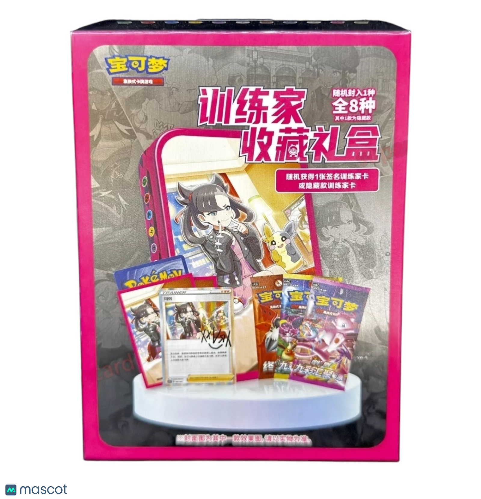 You are purchasing a 2025 Pokemon Sword & Shield Trainer Collections Chinese Gift Box. In this blind box you will recieve: - x1 of 8 Trainer-themed Metal Tin Box - x1 of 8 Trainer Holo Promo Card (matching w/tin) - x64 Trainer-themed Card Sleeves (matching w/ tin) - x3 Chinese Slim Booster Packs (Polychromatic Gathering Set A & B, Flame Dance of the End) Item Information Year: 2025 Manufacturer: Pokemon Set: Sword & Shield | Trainer Collections Features: Chinese Config: Gift Box When managing inventory mistakes can happen, so please reach out in advance if you have any questions or if something looks incorrect! Thank you for shopping with us! Listed With Mascot.