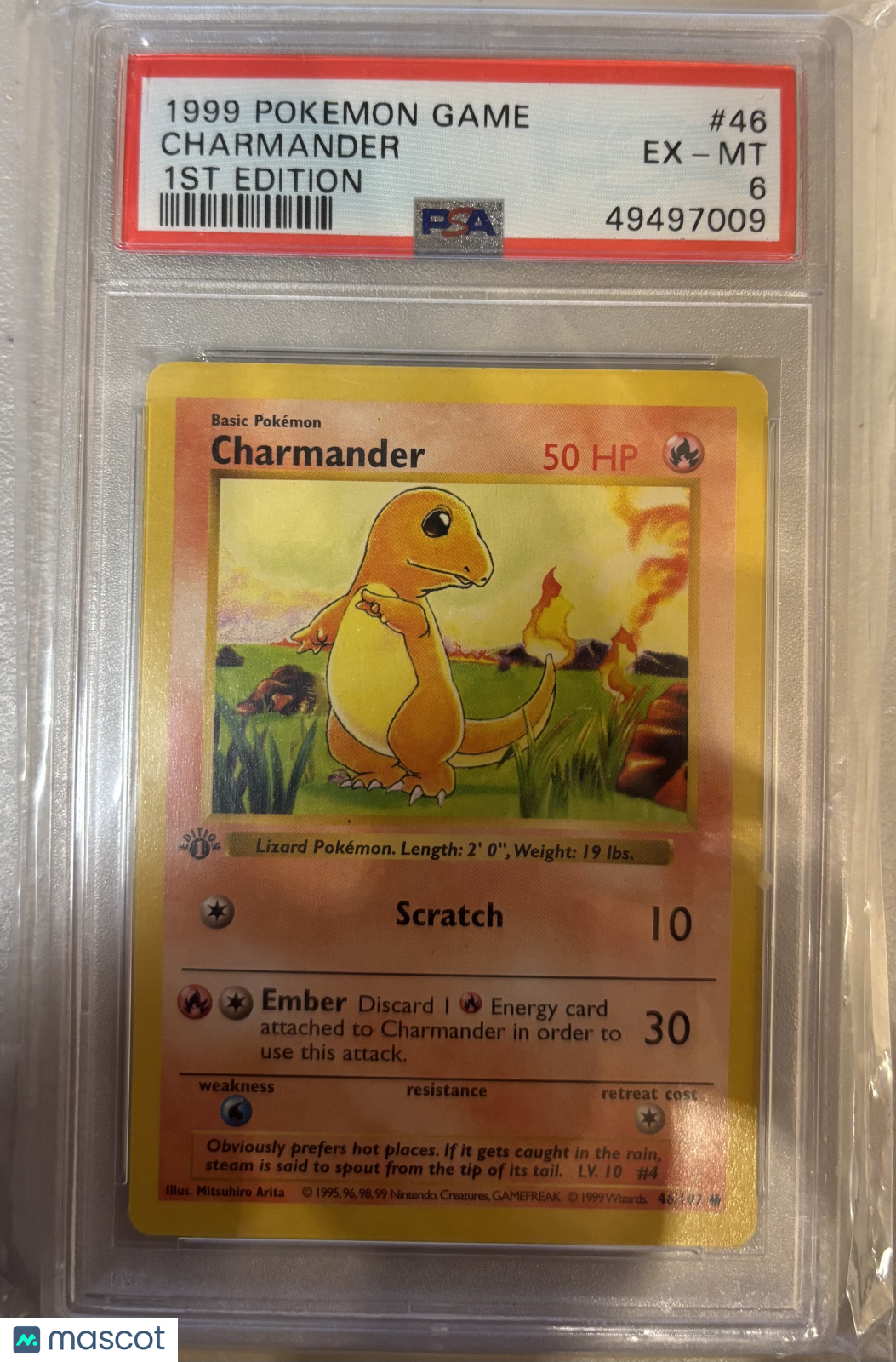 Please read the title of the listing while confirming the photo(s) and the below. Use the photos as reference as the card condition listed my be incorrect. Please reach out in advance if any questions about condition or quality! Items are crossposted and synced across multiple platforms so act soon if interested. Any additional questions please reach out. You are purchasing a Charmander 1999 Pokemon Game #46 1ST Edition PSA 6. You will receive the exact item in the photographs. Thank you for looking. Listed With Mascot.
