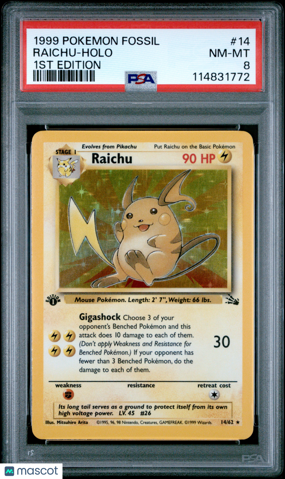 Raichu 1999 Pokemon Fossil #14 1ST Edition PSA 8
