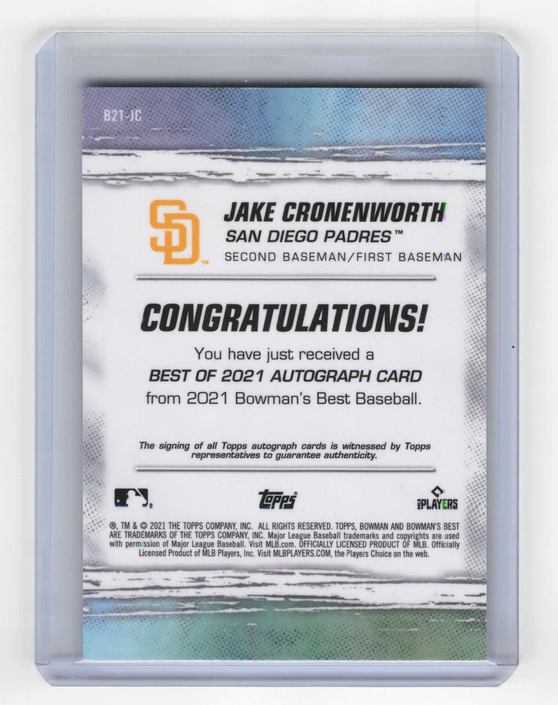 Topps 2021 Bowman's Best Baseball Jake Cronenworth Auto RC #B21-JC Near Mint