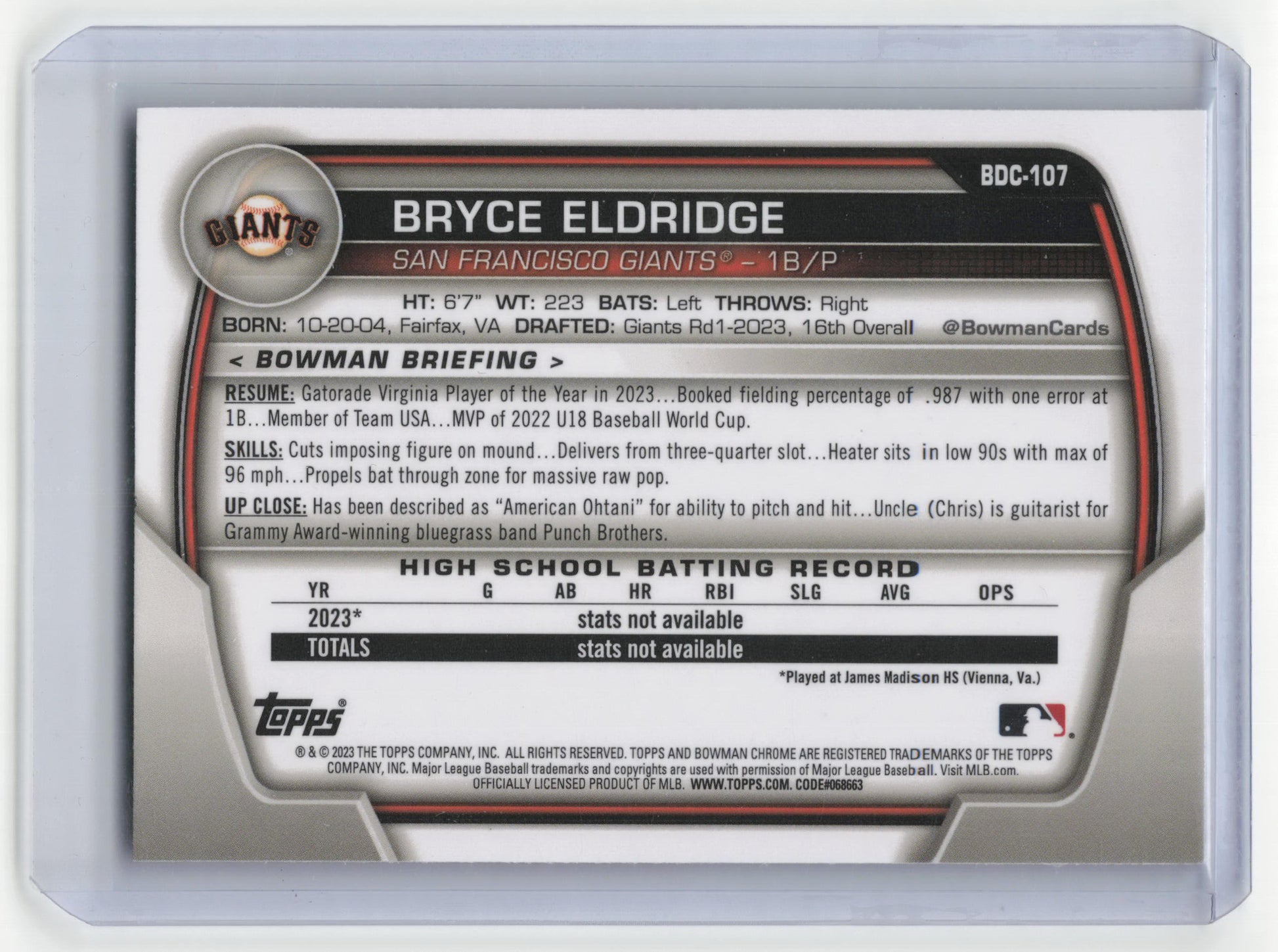 Topps 2023 Bowman Draft Chrome Bryce Eldridge Lunar Glow #BDC-107 Near Mint