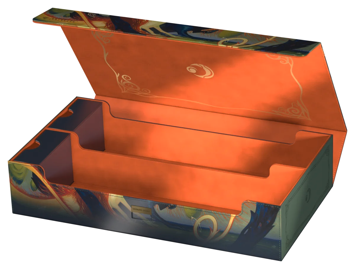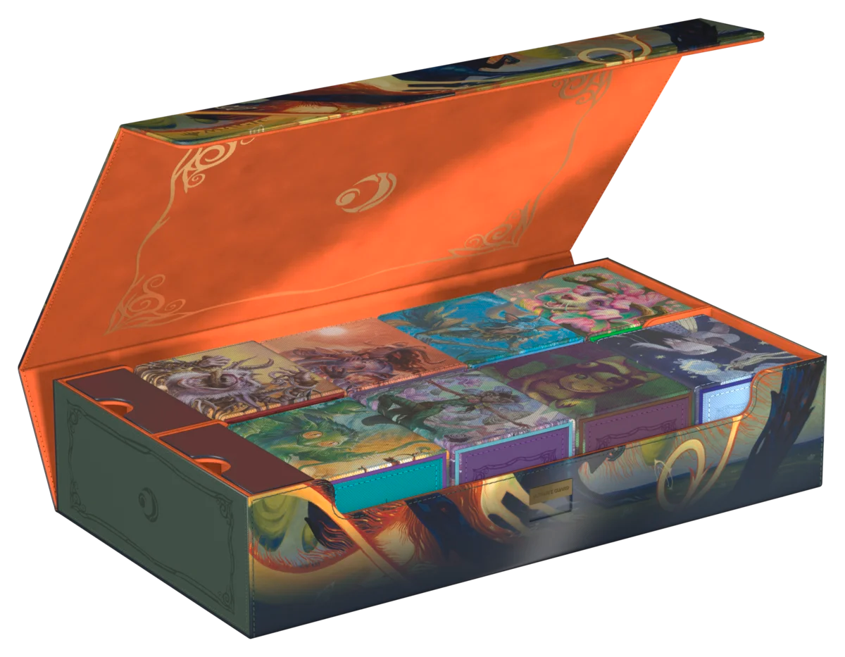The Omnihive 1000+ Xenoskin from Ultimate Guard, featuring officially licensed artwork from the Magic: The Gathering set "Lorwyn Eclipsed," is the ultimate storage box for multiple MTG deck boxes and/or playmats. It also boasts two flexibly positionable magnetic accessory trays and guarantees premium protection thanks to its durable Xenoskin material, high-quality microfiber interior, and strong magnetic closure with an additional ZnapClaw mechanism. With a capacity for eight Sidewinder 100+, six Sidewinder 133+, or alternatively up to 1000 double-sleeved single cards (in Ultimate Guard sleeves*), the Omnihive 1000+ Xenoskin is ideal for storing a Cube.